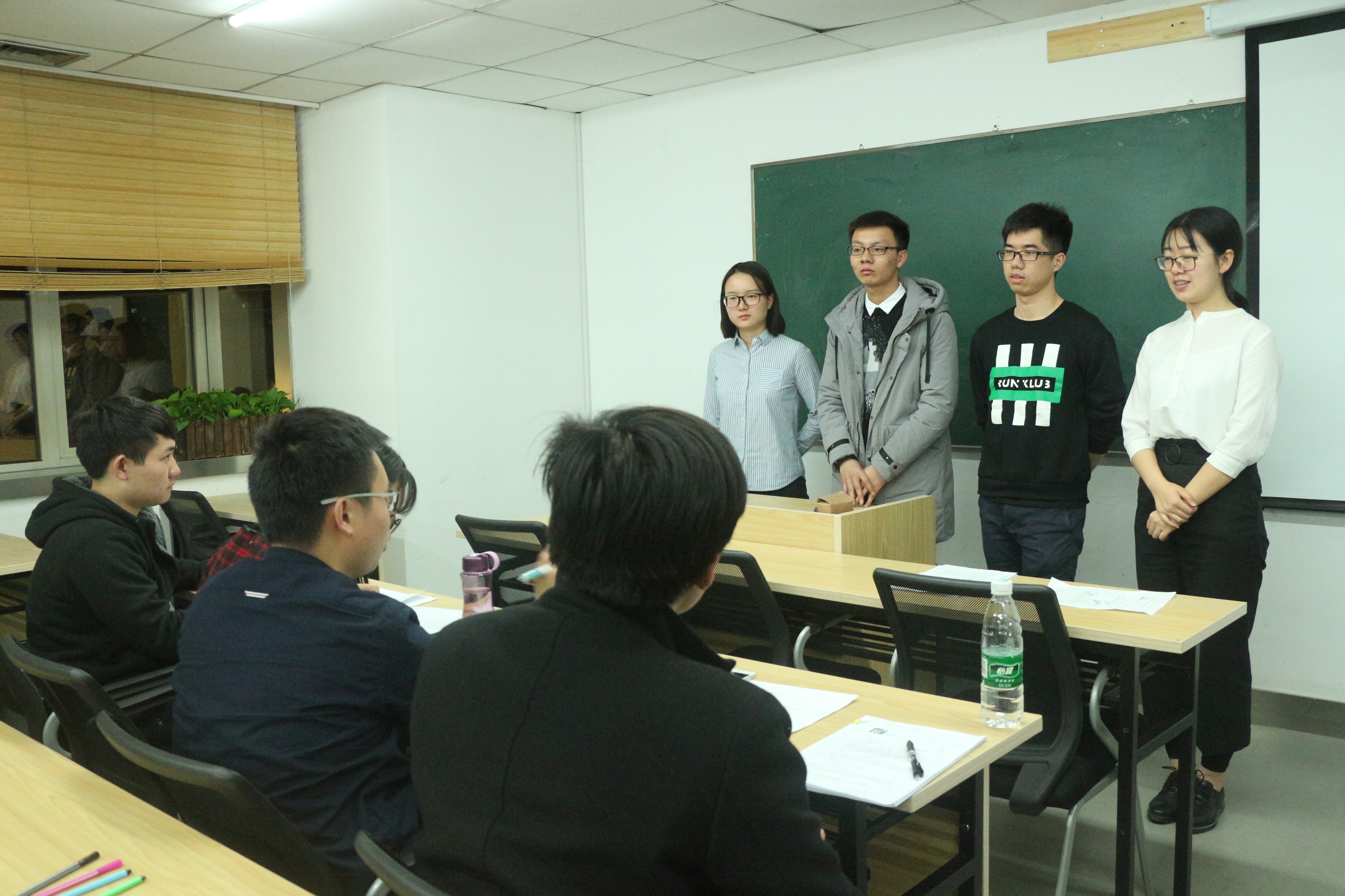 晚上6:05比赛正式开始,每一组在高度紧张紧凑的环境下讨论了两个小时,并用流利的英文向评委们展示了自己的思路与分析成果,最后均接受评委的质疑与提问。