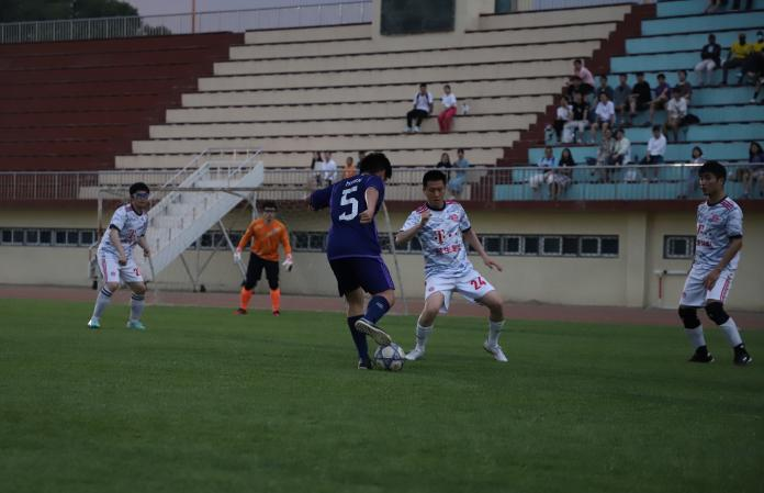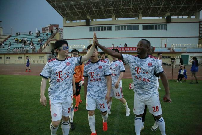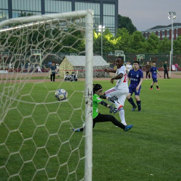 当天,天色渐晚,在学校东操体育场内,身穿白色队服由左往右攻的是经生联队,数化统天联队则身着经典的切尔西蓝。随着主裁判一声哨响,经生联队率先开球,开球后经生联队牢牢掌握着控球权。比赛第4分钟,坦桑尼亚前锋Duwe在前场得球,一脚劲射球擦着球门边网飞出。经生联队一直将数化统天联队压制在对方半场内,第十分钟,数化统天联队觅得防守反击得绝佳机会,对方15号前锋凭借速度摆脱我方防守球员,但其单刀被经生联队门将宁平轻松化解。大约第15分钟,核心中场许辉接边锋刘刚传球,拔脚便向球门怒射,对方门将扑球脱手,Duwe紧跟着一脚贴地斩补射,球擦着边进入了球门,Duwe为经生联队拔得头筹!此后,双方你来我往,一直到中场结束均未形成较好的机会。