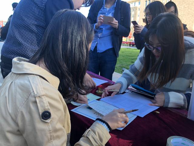 虽然寒风凛凛,大家却丝毫没有丧失热情,一来到新校区,就开始井井有条的布置起会场,等候各位新生的到来。八点开始,2018级博士新生开始陆续到来,在工作人员的引导下报到签到,领取银行卡、学生证及相关材料。工作人员与各位老师也解答了新生的种种困惑,努力帮助大家最快的融入北师大经管大家庭。整个昌平新校区人声鼎沸,热火朝天,清澈的喷泉和飘扬的气球点缀着校园。